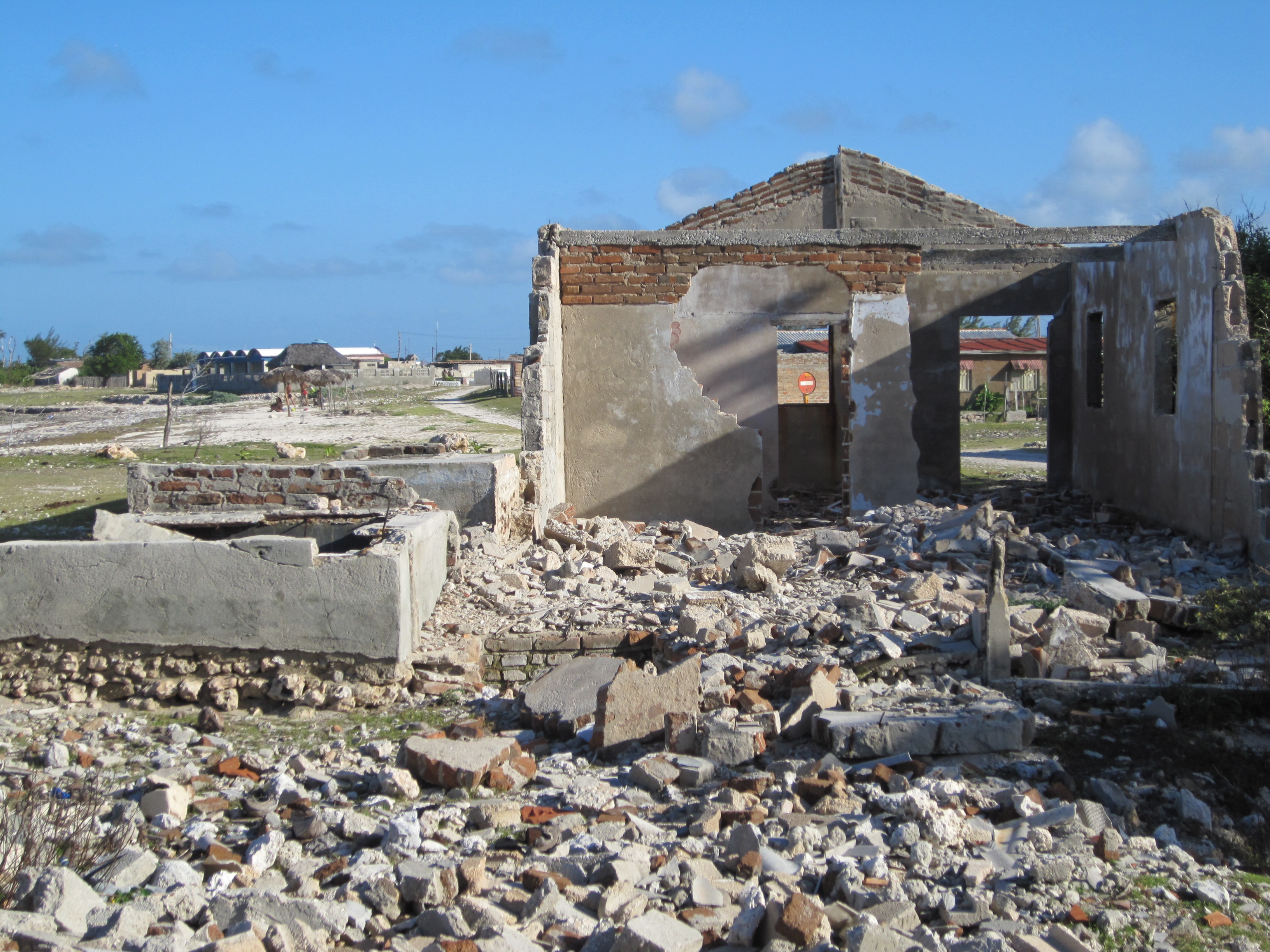 We got to see firsthand evidence of the damage wreaked by Hurricane Sandy in Holguin province. Firstly in a small seaside village outside of Gibara (Columbus originally landed near here in 1492) where some houses had been reduced to rubble and others were still without their roofs. The same could be said for many houses in Gibara and Banes (former headquarters in Cuba of the very evil USA owned United Fruit Company) near Guardalavaca. The wonderful pine forests in Pinari Del Mayari, a national park in the mountains outside of Holguin, were also raised to the ground or chopped in half by the hurricane that blew here for 6 hours. It appeared as though a giant had gone on a rampage through the mountains wielding a large machete. As we descended to the bottom of the 100m waterfall in the park we had to dodge many fallen trees and climb over large trunks. The lookouts and toilets at the top of the ridge had been completely destroyed and the poor ranger in residence had to hide himself under their foundations so as to not to be blown away or crushed.