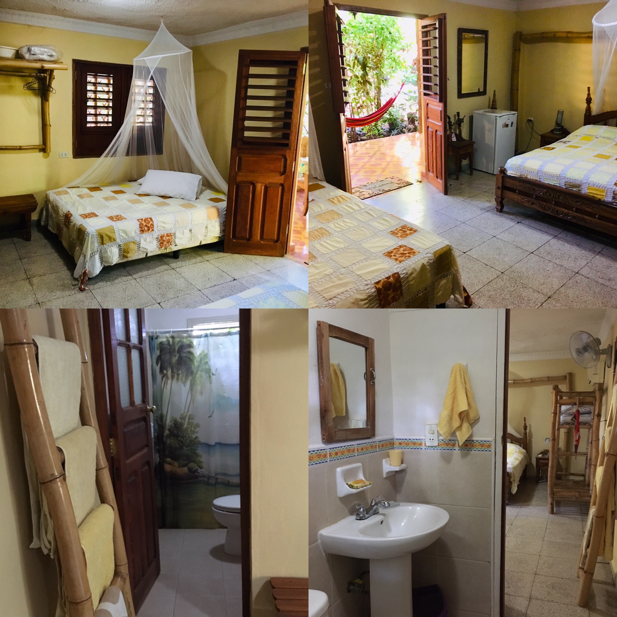 The accommodation includes 2 spacious rooms with 2 double beds in each. 1 Room is a free-standing cabin and the other is connected to the main house by a long verandah. Both rooms offer ensuite bathroom, private entrance, air conditioning, a minibar, wall fan, mosquito nets, imported linen, luggage racks and hanging space for clothing. There are large private verandahs with hammocks and furniture for outdoor living. The courtyard and garden are common areas and guests are encouraged to wander freely and sample any ripe produce.